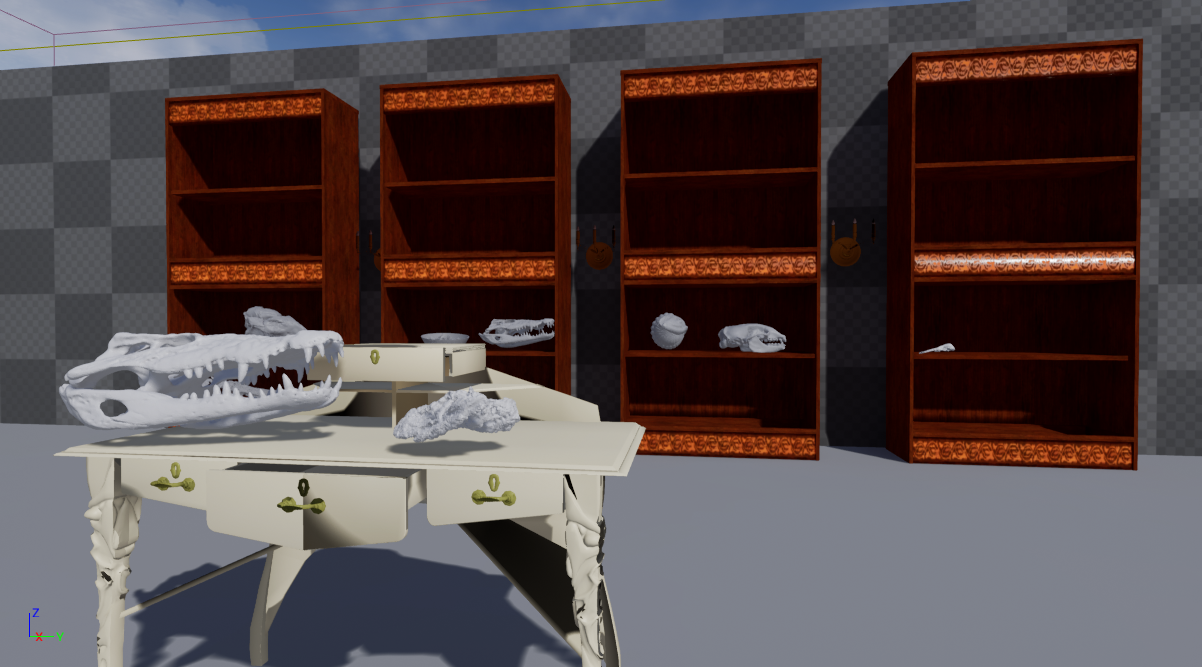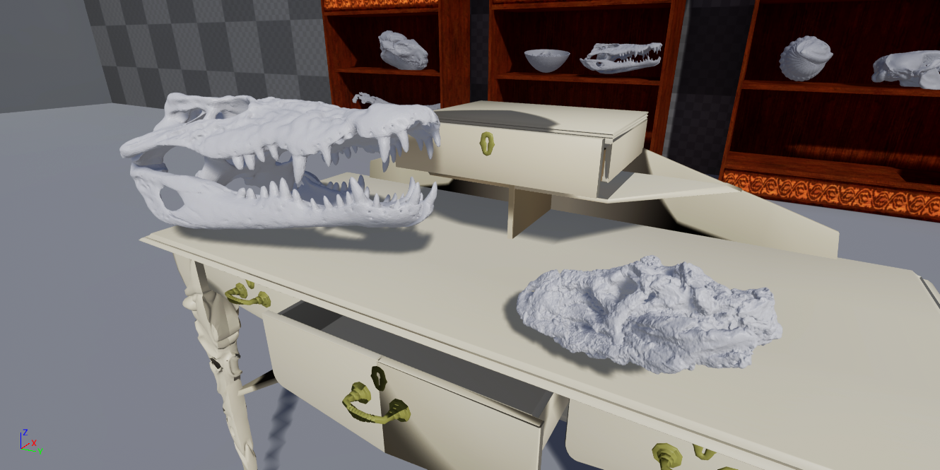 This platform was developed in order to use high fidelity fossil assets created from 3D models acquired from MRI machines, in order to allow for scientific inspection of the samples. These assets were created by both the team and retrieved from scientific repositories on the internet.