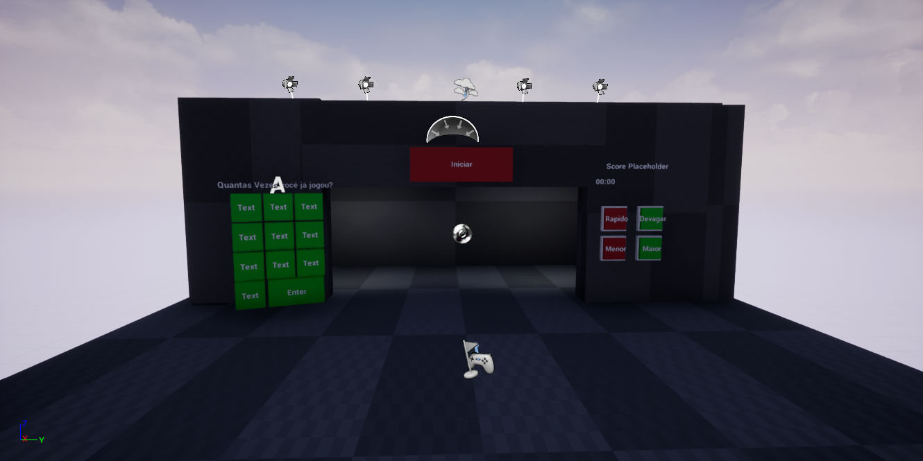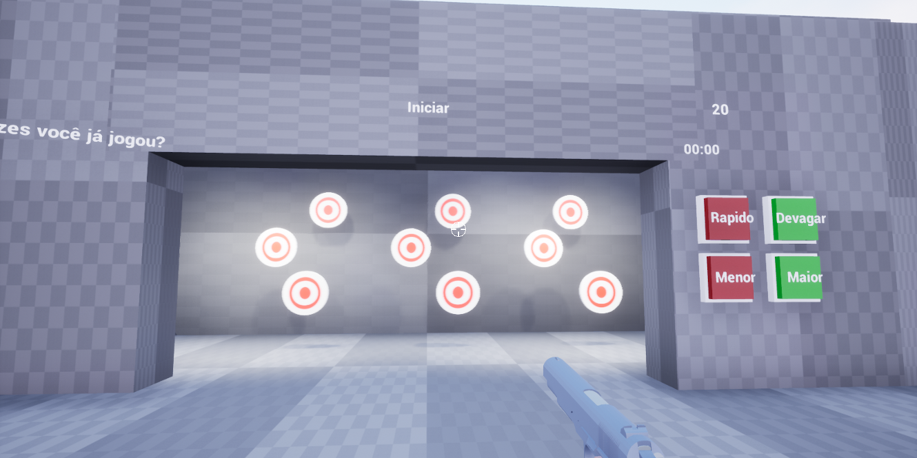 This game mimics a carnival-like shooting range, in which the players have a handgun and targets float in a shooting stand in front of them. The shooting stand had controls for the size of the targets and for controlling the size of the spawned targets.